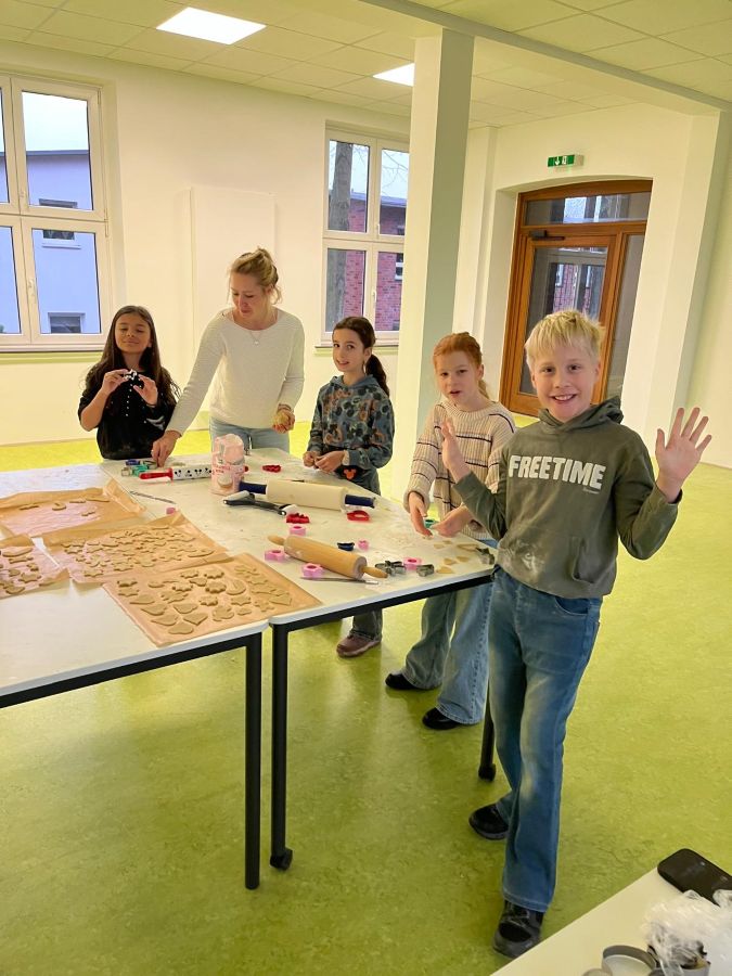 In den vergangenen Tagen trafen sich Eltern, Schüler und Lehrer um zu basteln, zu werken und zu backen. Und so schleicht sich langsam die Weihnachtszeit in unsere Schule. Es riecht nach leckeren Plätzchen und Waffeln, man hört es hier und da hämmern und sägen. An den Fenstern glitzern Weihnachtssterne und allerlei schöne Dekorationen.