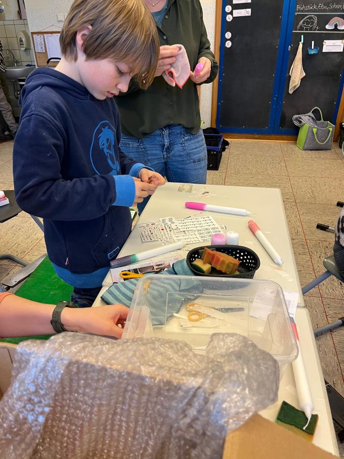 Angeleitet wurden die Kinder von den beiden erfahrenen Hobbyschneiderinnen Frau Bertels und Frau von Bar. Liebe Frau Bertels und liebe Frau von Bar, wir bedanken uns ganz herzlich für Ihre Zeit und diese tolle Unterstützung.